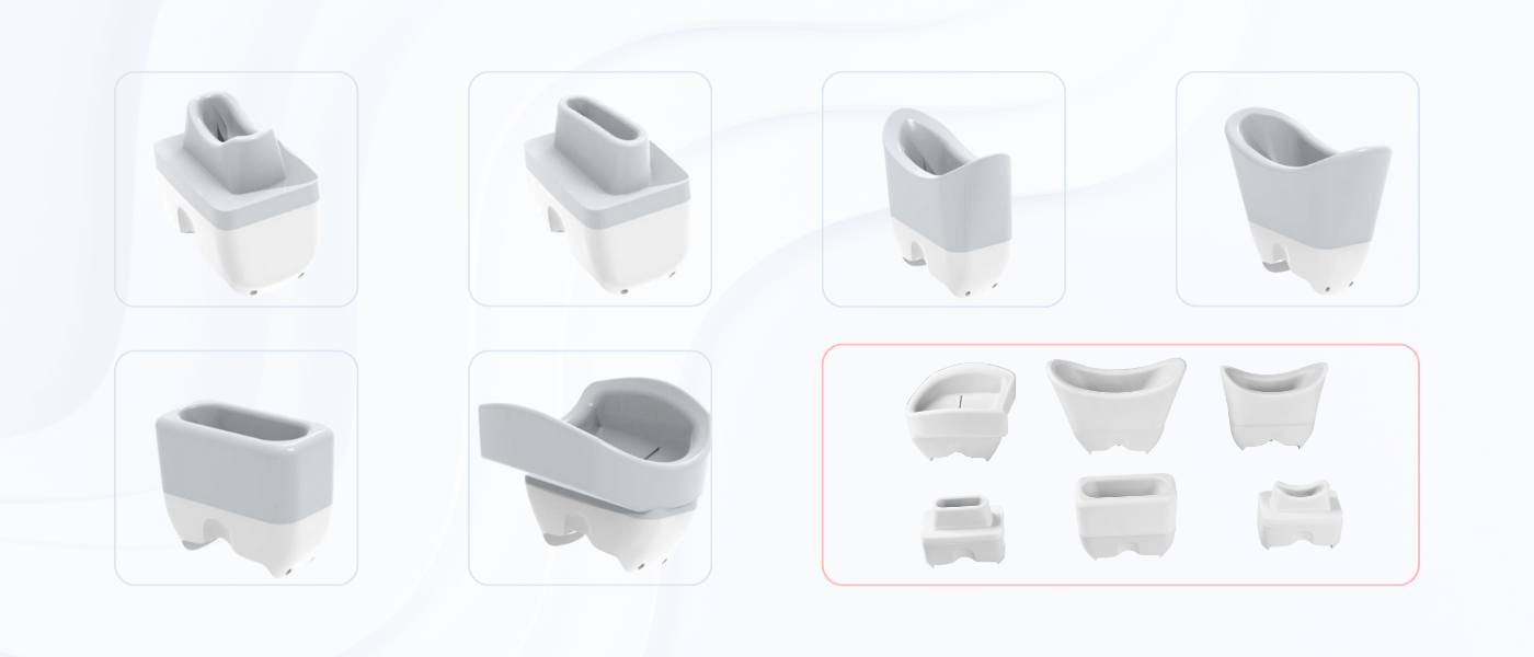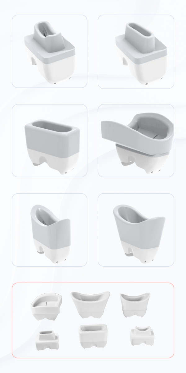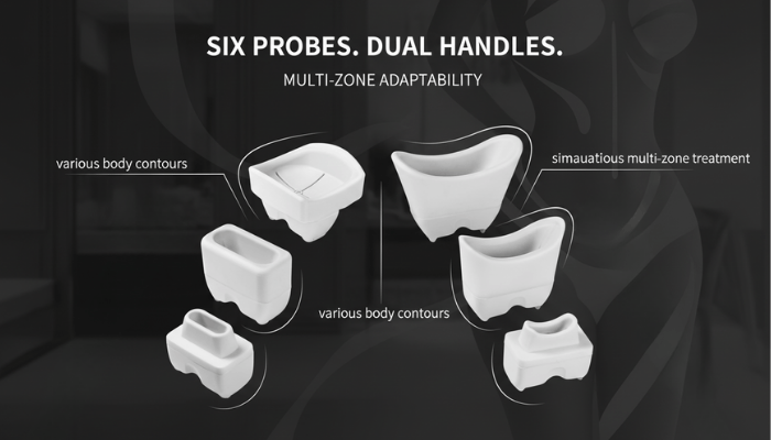 Six interchangeable silicone probes and dual handles adapt to various body contours, allowing for simultaneous multi-zone treatment.