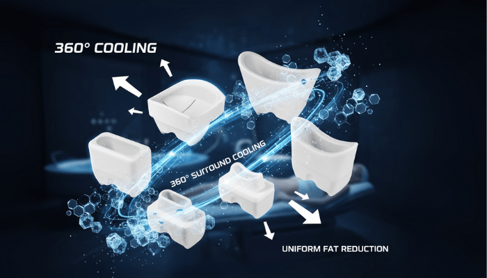 The 360° surround cooling design ensures uniform fat reduction across larger treatment areas.