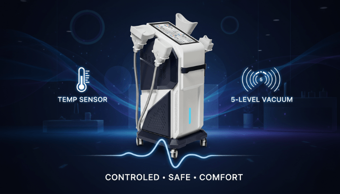 Built-in temperature sensors and a five-stage vacuum adjustment ensure controlled, safe, and comfortable procedures.