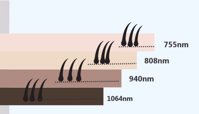 755nm: Effectively removes light, brown, and white hair