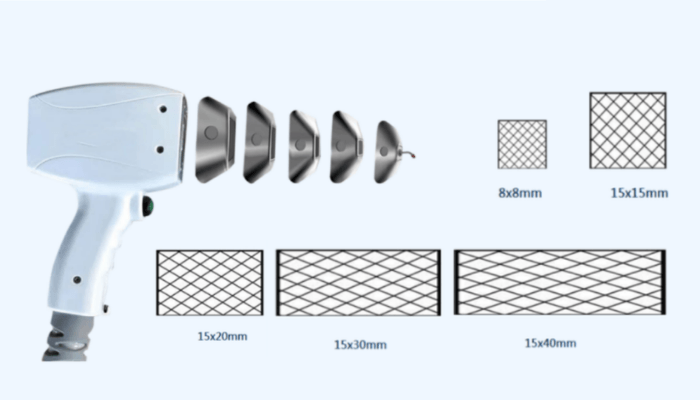 The handpiece offers adjustable energy from 300W to 3000W and selectable spot sizes, facilitating treatments on various body areas and meeting diverse customer needs.