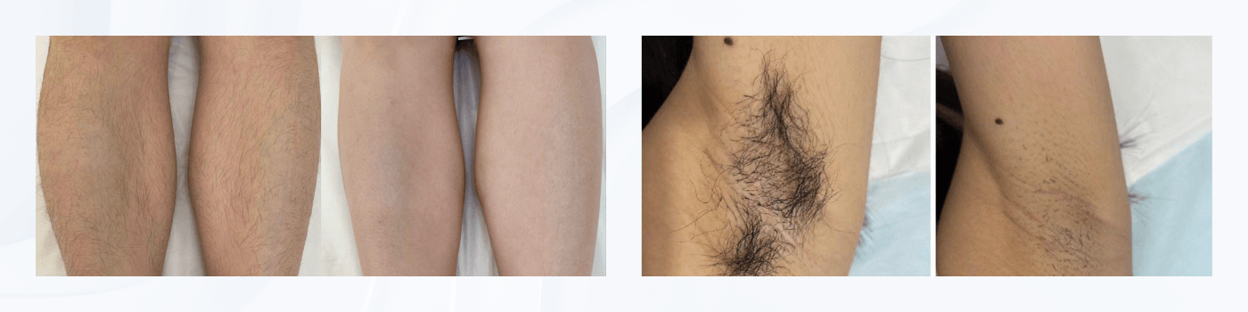 Before and after results of Diode Laser 808+1064+755+940nm Hair Removal Machine, showing visible hair reduction and smoother skin